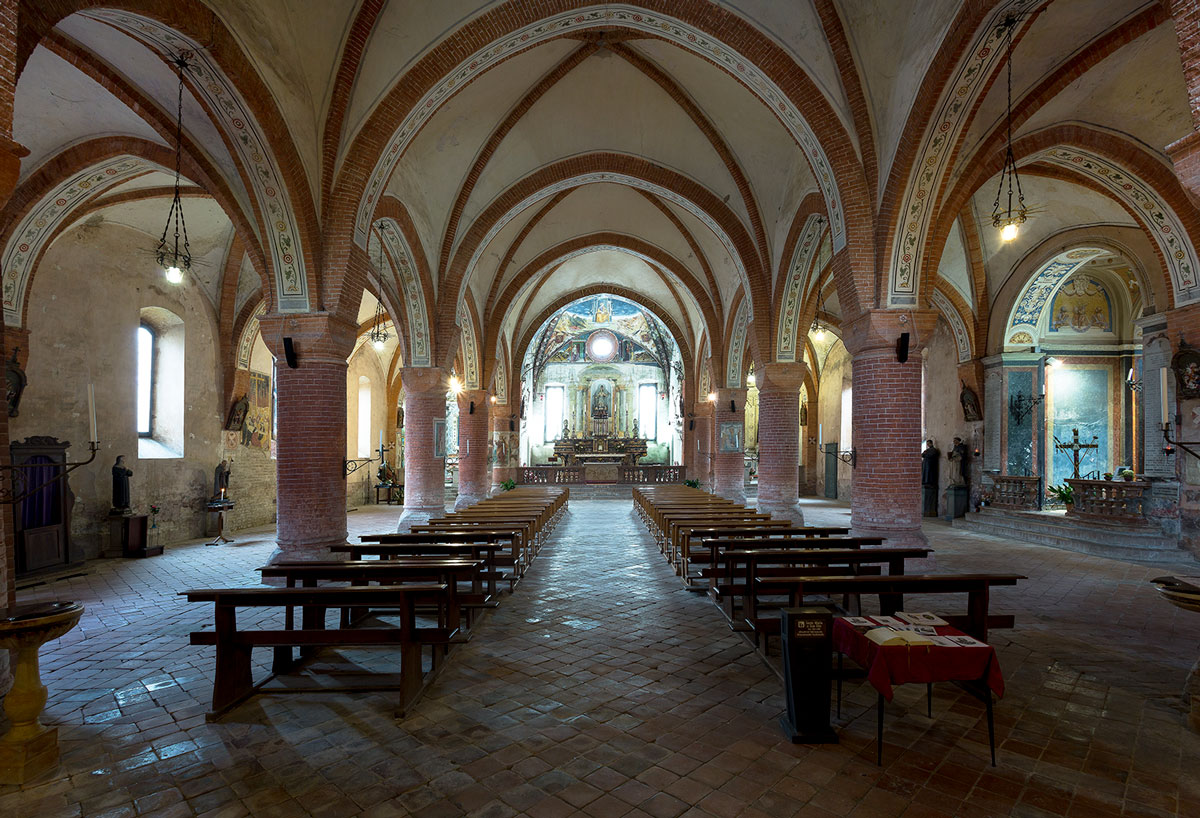 L’edificio che oggi vediamo risale agli anni tra la fine del Trecento e l’inizio del Quattrocento: i suoi principali riferimenti stilistici si situano nell’ambito del gotico lombardo e, più precisamente, dell’area Lomellina. La tipologia è quella delle cosiddette “chiese a sala”: le navate laterali hanno un’altezza tale da creare, insieme alla navata centrale, l’effetto di un ambiente unitario, percepibile in un solo colpo d’occhio.