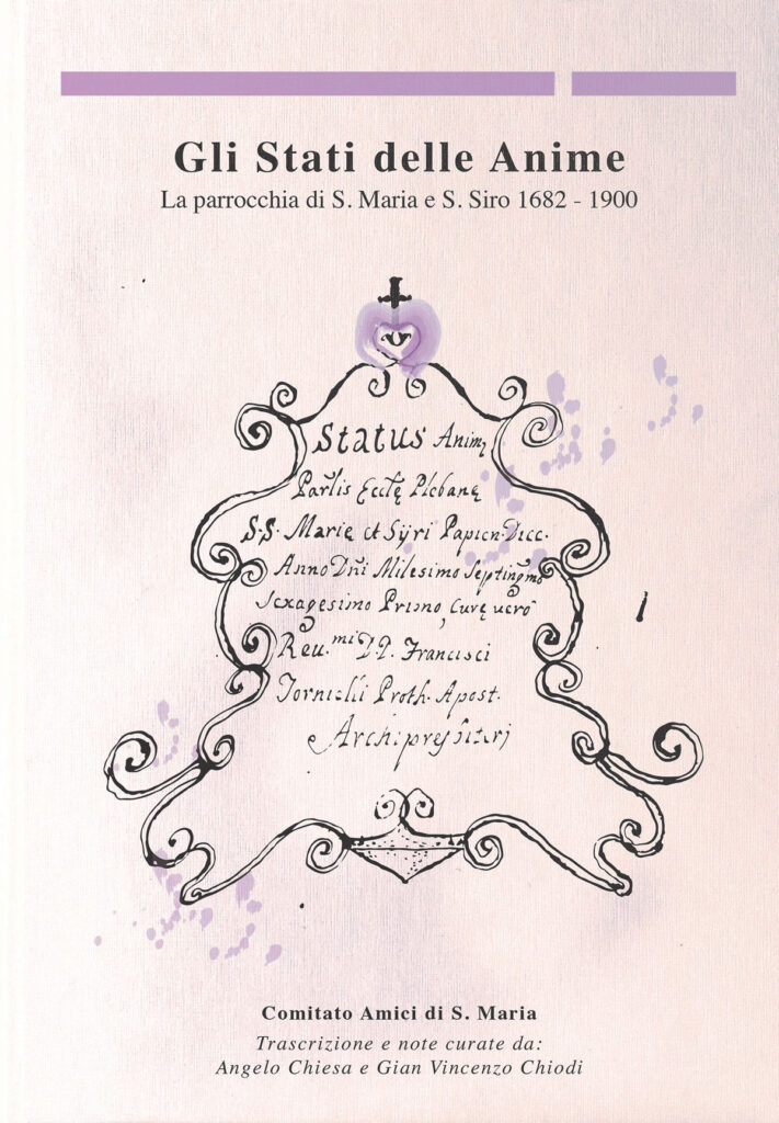 Pubblicazione redatta dal Comitato Amici di S. Maria e S. Siro che trae origine dall’esame di documenti di archivio della chiesa e che analizza due secoli di “Stati delle Anime”. – Sale, dicembre 2019