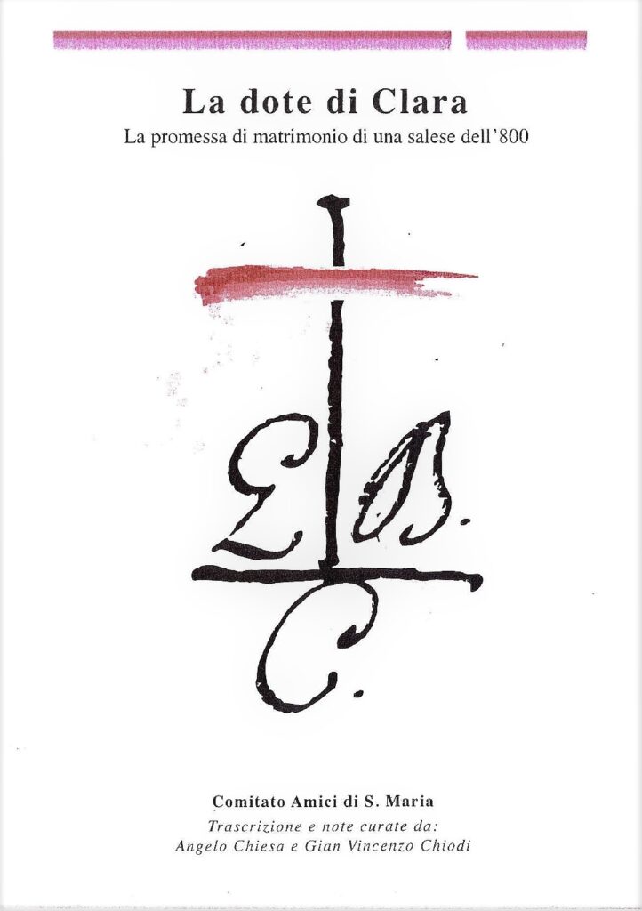 Pubblicazione redatta dal Comitato Amici di S. Maria e S. Siro che trae origine da documenti di archivio della chiesa, analizzando un contratto di matrimonio dei