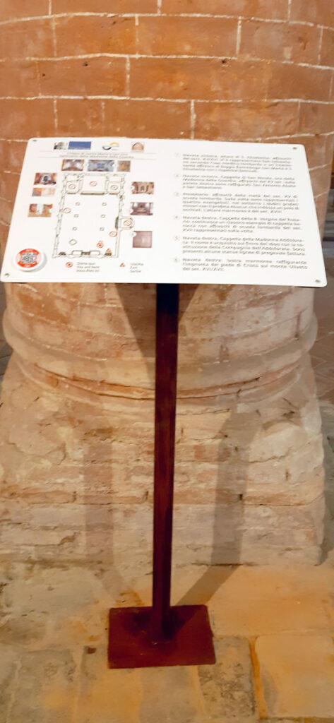 Il 2 dicembre 2021 abbiamo posizionato, una sul sagrato e una all’inizio della navata destra, due tavole con la descrizione delle principali evenienze artistiche della Chiesa. le tavole sono anche tradotte in linguaggio braille, un QR completa le installazioni.