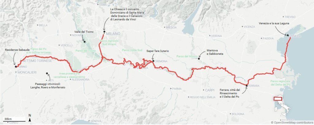 Il famoso tracciato cicloturistico progettato dal Politecnico di Milano lambisce il territorio salese passando sull’argine del Po in territorio comunale di Alluvioni Piovera.